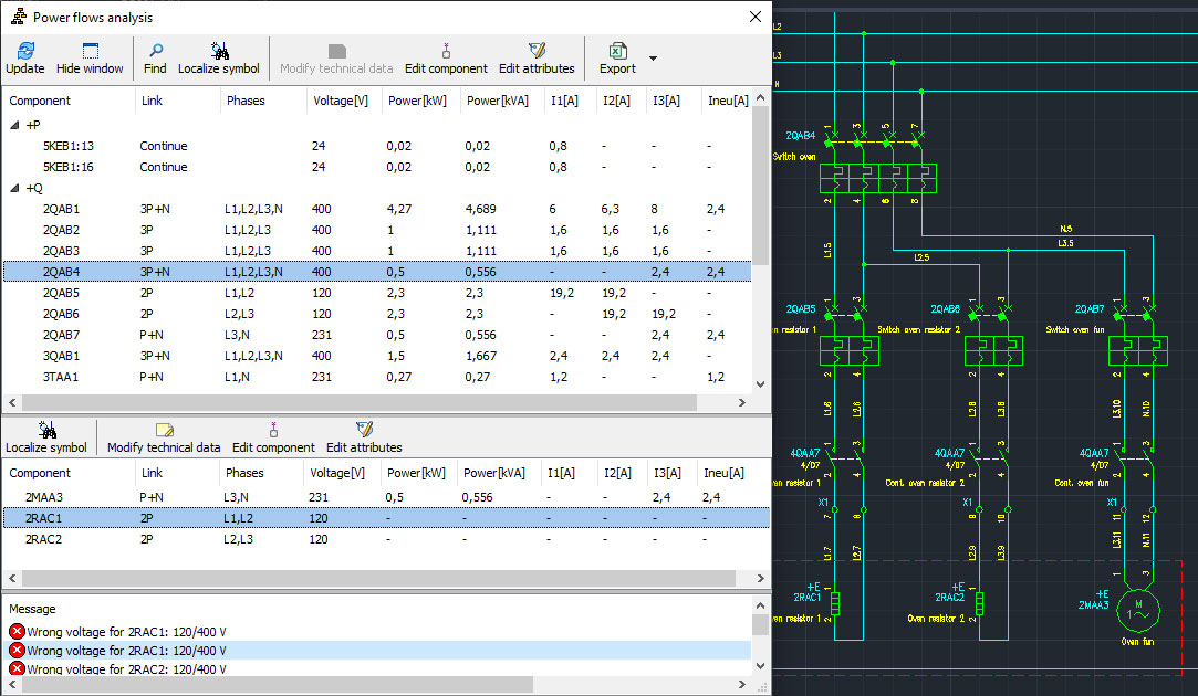 The analysis of the power flows is a function of CADelet / iDEA / Eplus software which allows to determine the power and current values required in certain points of the wiring diagram in order to allow the correct sizing of disconnecting and protection elements. power supply groups, generators, transformers and converters.