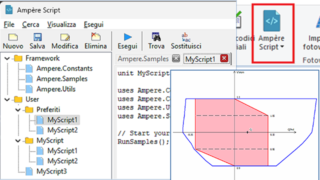 Ampère Evolution: curve di capability P/Q - V/Q e Ampère Script.