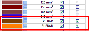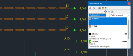sezione del conduttore impostata. Tipi linea dedicati identificano le