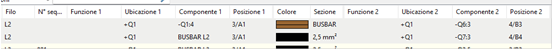 • i collegamenti barra-filo il componente lato barra è composto dal riferimento barra e dalla sigla del filo.