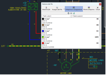 assegnazione dei dati filo alla connessioni elettriche del foglio. Il comando