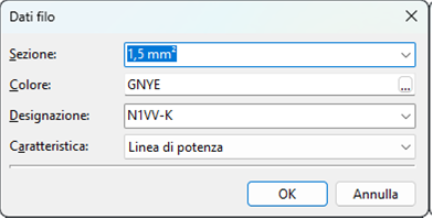 sezione, colore, designazione e caratteristica. La lista dei tipi filo consente