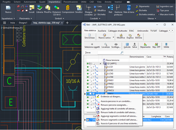 delle utenze, l’elaborazione delle liste dei cavi ed il riporto su apposite
