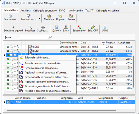 che considera complessivamente i cavi definiti per le utenze distributive e i