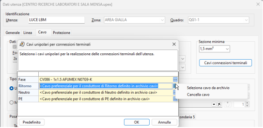 preso in considerazione il conduttore preferenziale definito in Archivio cavi.
