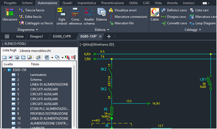 visualizza comandi dedicati alla tipologia di progetto: comandi Filo, Morsetti, Analisi fili, etc. in