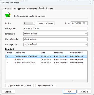 la revisione di commessa selezionata.