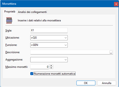 Nella finestra Morsettiere è possibile individuare