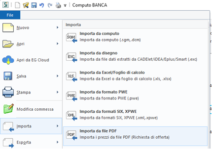 4. Successivamente sarà possibile importare in computo i prezzi dal file pdf compilato.