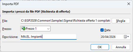 consente di importare i prezzi dal file .pdf di richiesta di offerta compilato.
