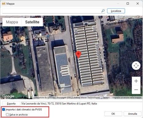 confermare la richiesta di Importare i dati climatici da PVGIS: in questo modo