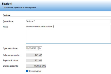 sulle proprietà della sezione, che permette di collegare le stringhe con moduli