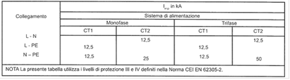 tabella 534.3 della CEI 64-8/5.
